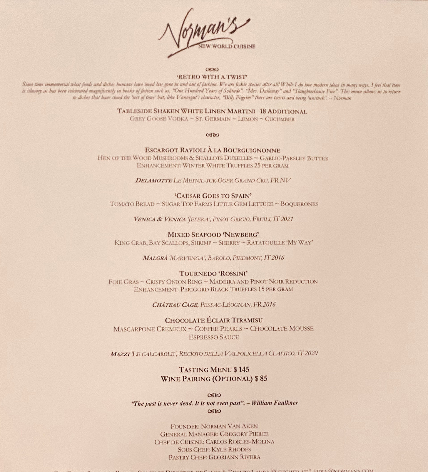 At our restaurant, "NORMAN'S" in Orlando we continue with the tradition I began years ago in Key West and then continued as we grew. We recently celebrated our Second Anniversary at the new location just off Sand Lake Road. As many of you know we were located within the Grande Lakes, Ritz-Carlton for 16 wonderful years before that. Orlando has grown too! This Central Florida city is, in fact, thriving. We love to do our Tasting Menus to cater to those that love the kind of high end dining one associates with a sophisticated city.