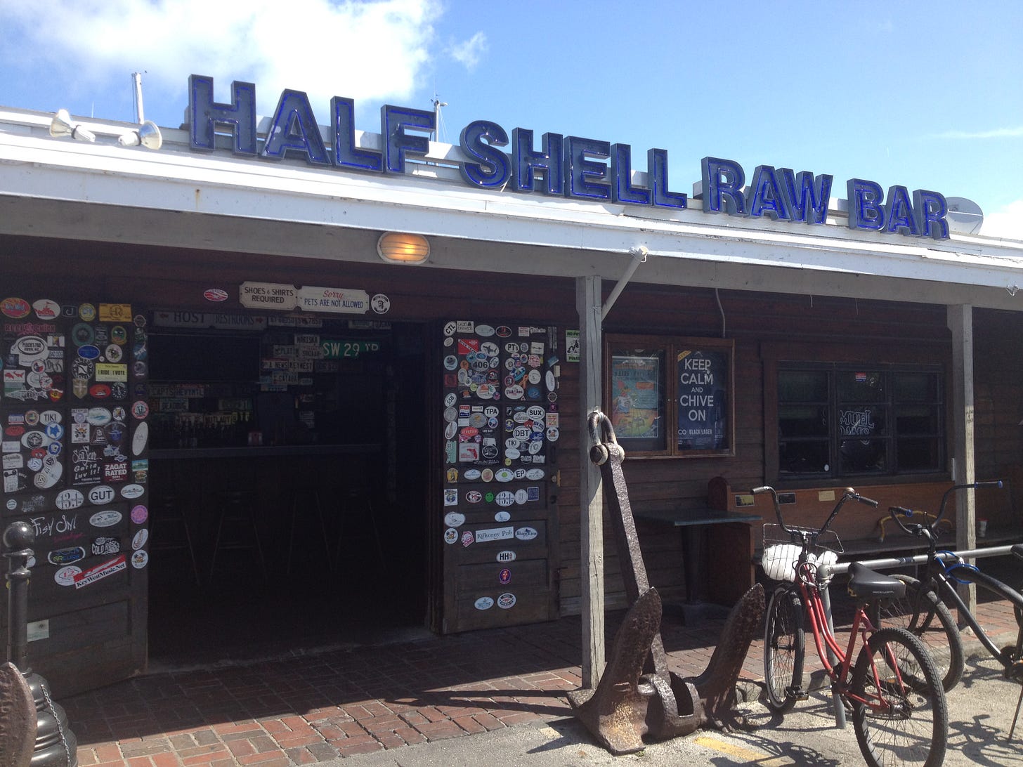 Conch Chowder. This soup is, like conch fritters and conch salad a must have in KW. One place that stands out is ‘The Half Shell Raw Bar’ for Conch Chowder. And you get to sit looking out at the calming waters off the Island City. This bar/restaurant has been rocking along for years and is as comfortable as an ancient pair of blue jeans.